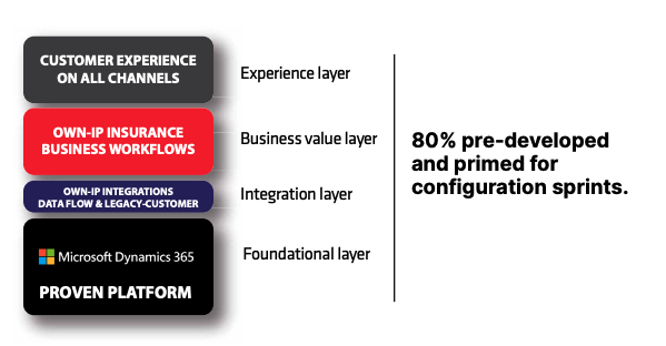 After 10 years of figuring this out, we've learned that combining a platform and our own IP gives insurers 80% of all they need out of the box. In our case 30 modules and workflows covering everything from claims, sales and customer support. This how INsurance2 DIGITAL CUSTOMER works.